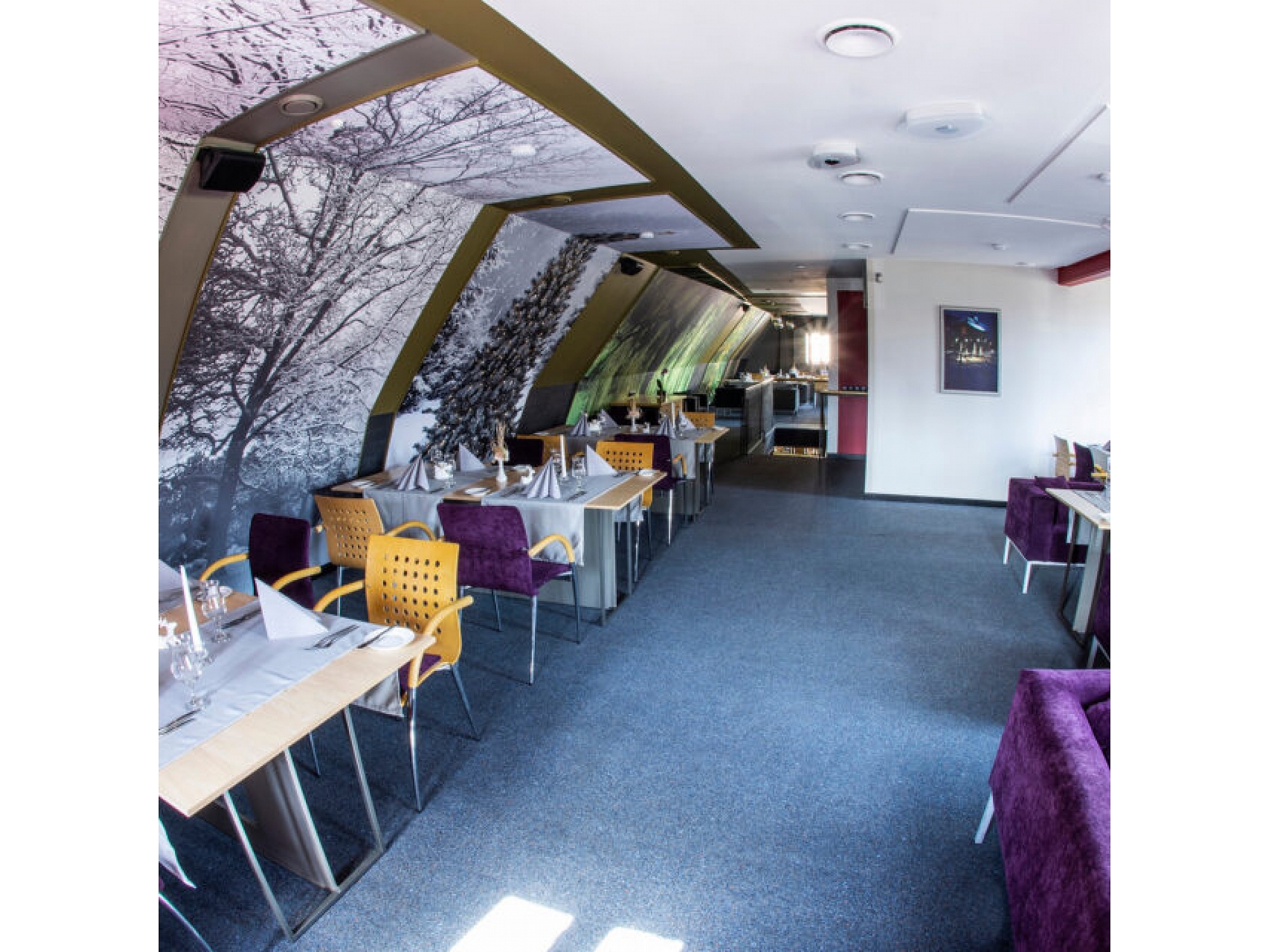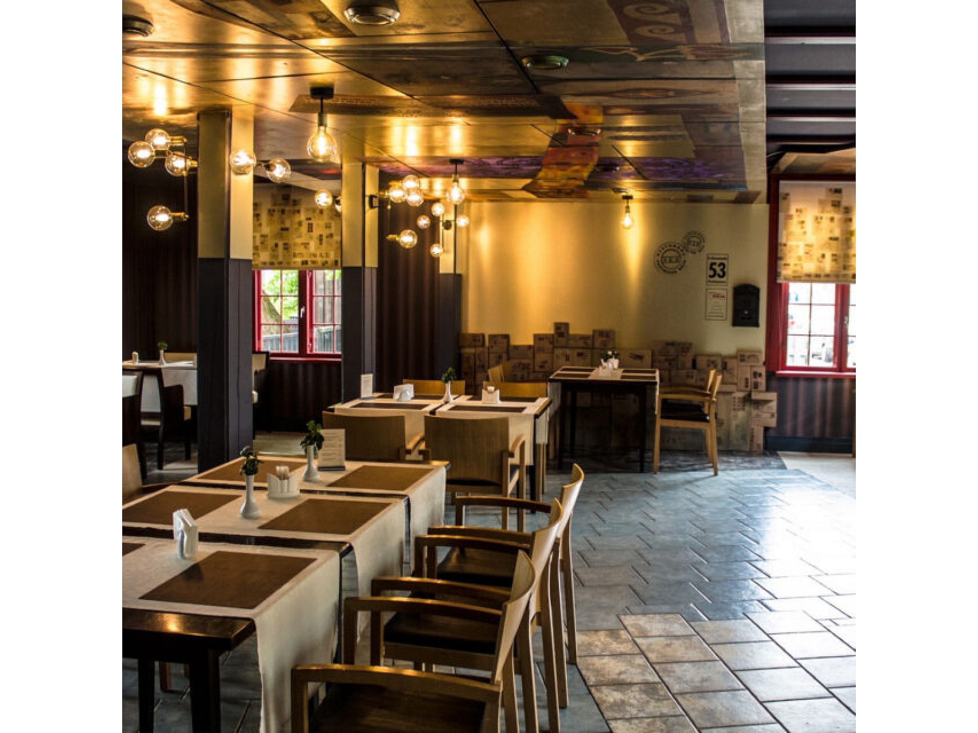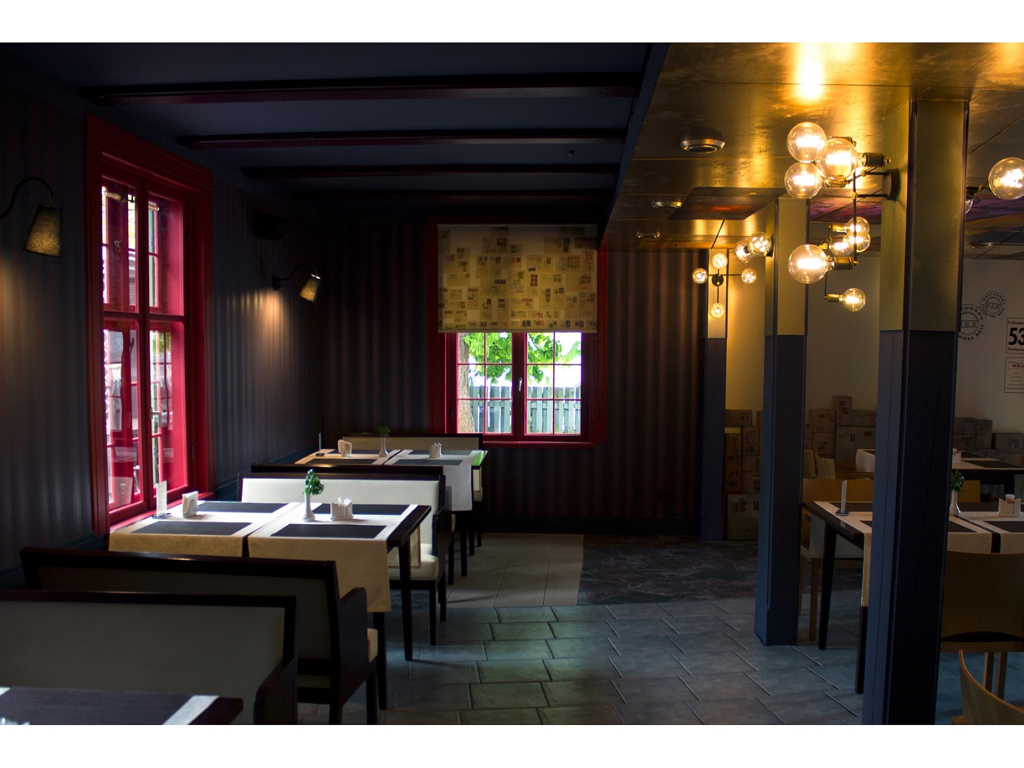 Restorāns izvietots divos stāvos, ļaujot rezervēt gan visu restorānu, gan atsevišķas telpas privātiem pasākumiem līdz pat 100 personām.