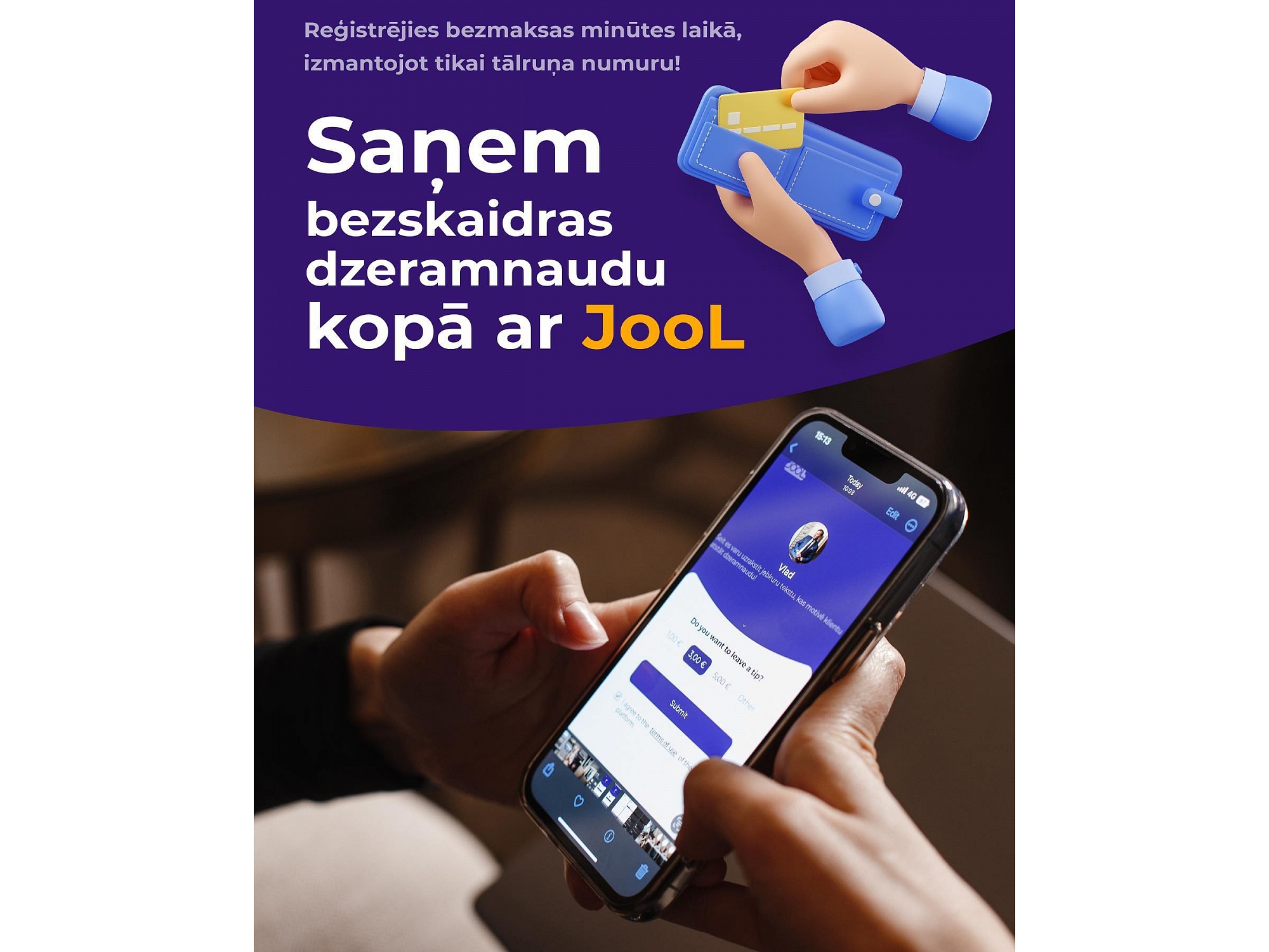 JOOL PAY piedāvā QR koda maksājumu saņemšanu un nosūtīšanu, nodrošinot ērtus bezskaidras norēķinus bez POS termināļiem. Risinājumi ietver digitālas dzeramnaudas un ziedojumu pieņemšanu, kā arī mobilu maksājumu lietotni iOS un Android ierīcēm. Klienti saņem maksājumu pārskatus un paziņojumus reāllaikā, savukārt bezkonta naudas pārskaitījumi nodrošina pakalpojumu pieejamību visā Eiropā.