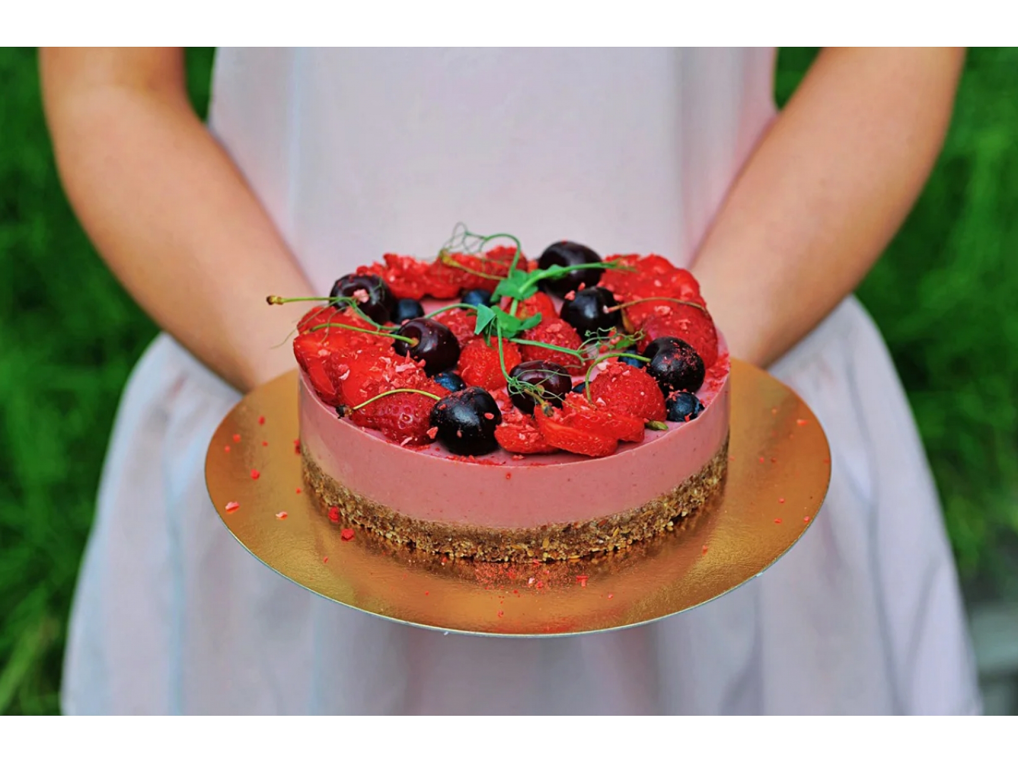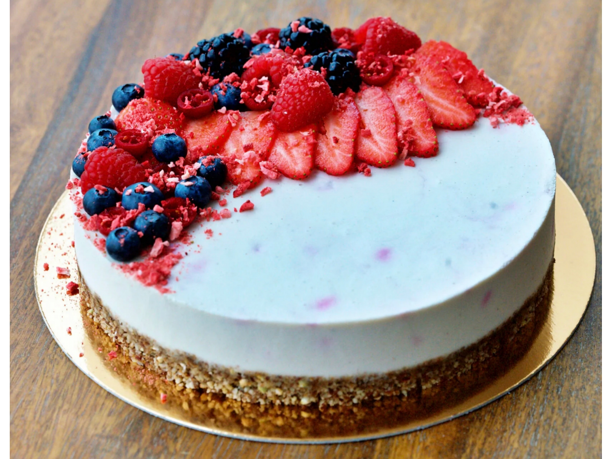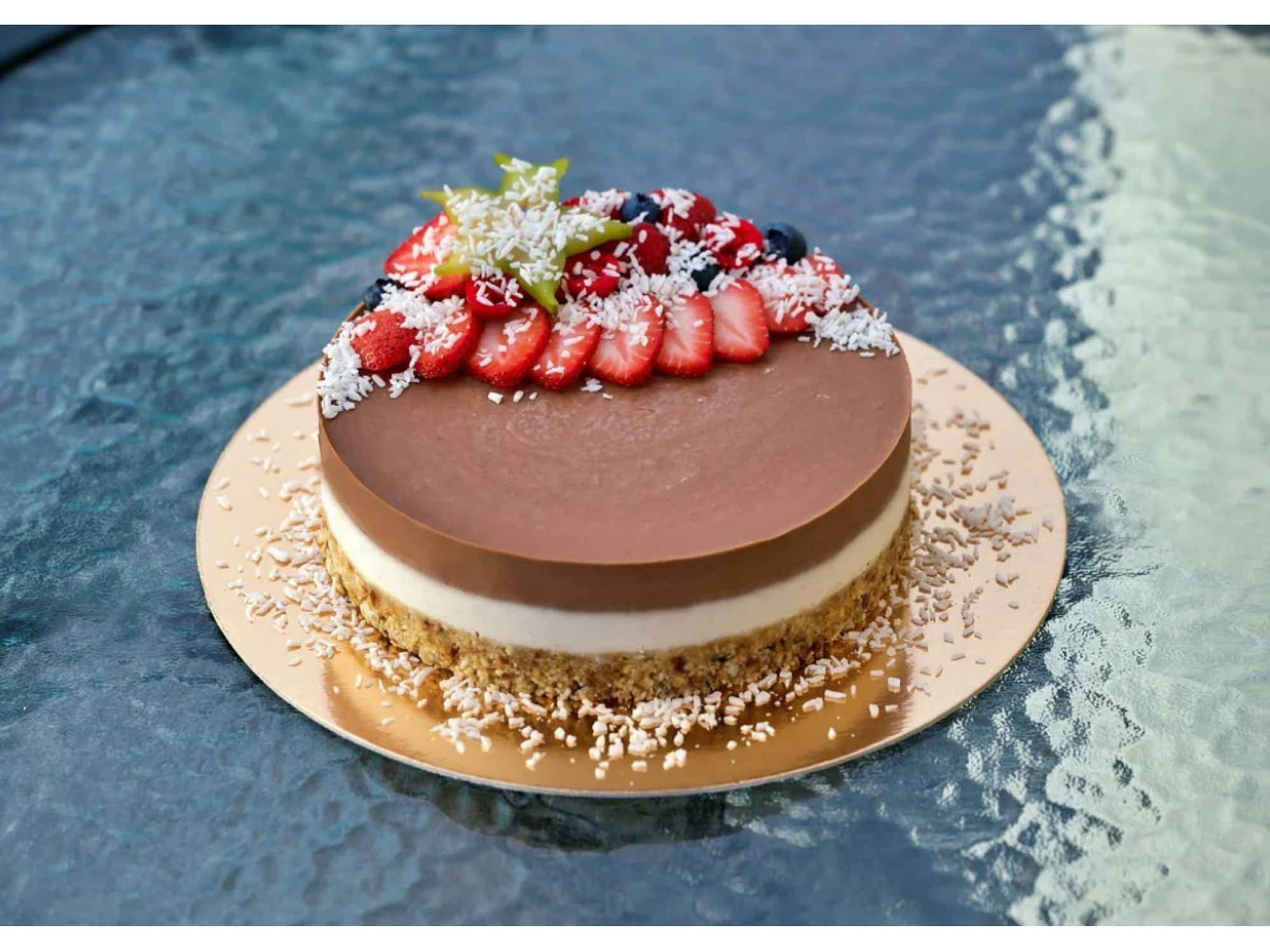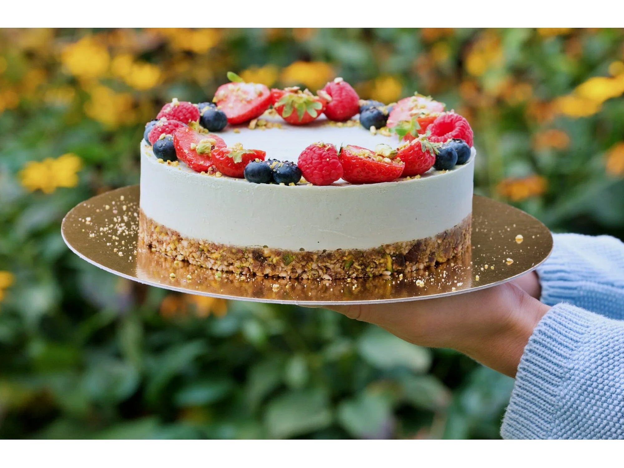RawCake готовит вкусные и визуально изысканные торты без муки, яиц, молока и сахара. Каждый торт изготавливается вручную из натуральных и питательных ингредиентов — орехов, свежих фруктов, ягод, кокосового молока, какао, кэроба и других растительных продуктов от проверенных поставщиков.