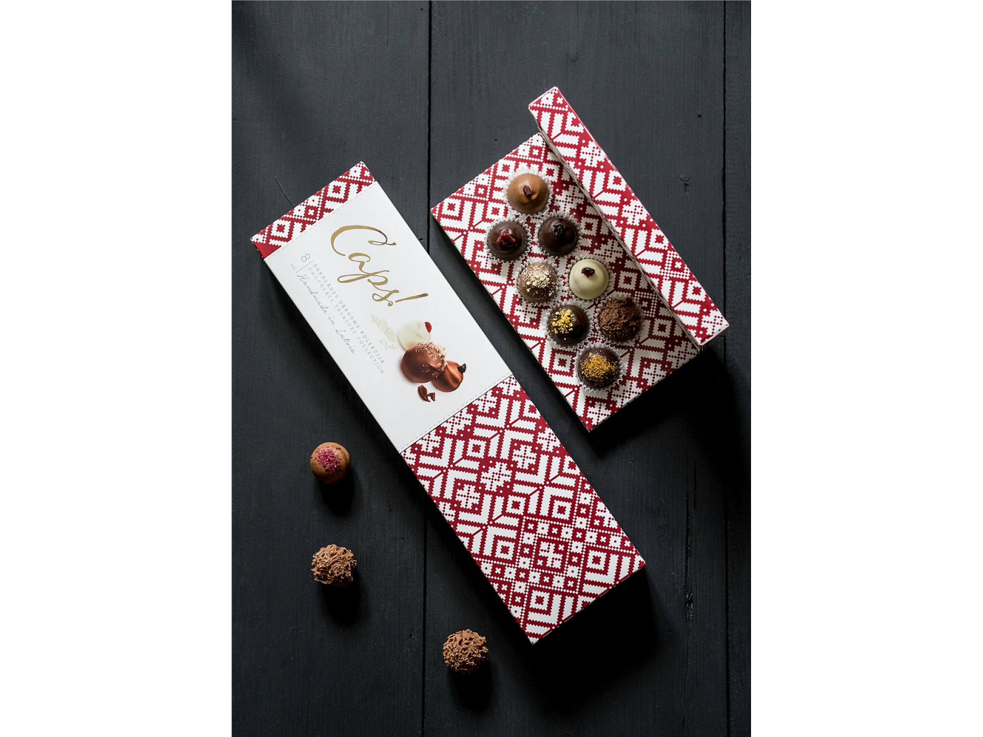 Exclusive, elegant, delicious.. It's in CAPS! Luxury chocolate gifts. We make high-class sweets in Latvia. By choosing our chocolate, you will make a lasting impression. We offer master classes for decorating chocolate bars and decorating round truffles. A wide selection of corporate gifts.