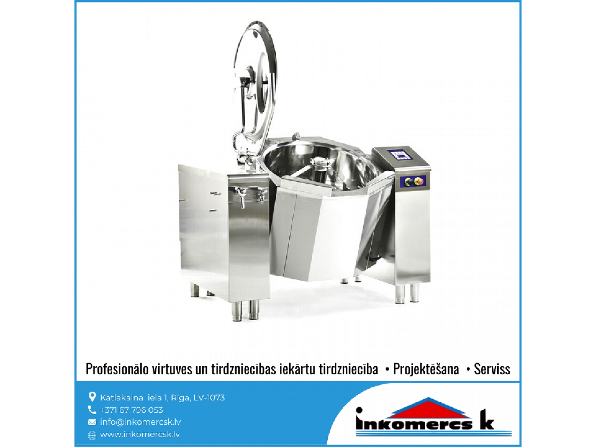 "Inkomercs K" offers a wide range of professional kitchen and commercial equipment in various price categories. We have more than 15 years of experience to offer our customers the best solution. We advise, design various types of catering establishment projects - cafes, bars, canteens, shops, supermarkets, hotels, schools, kindergartens and others. We also deal with equipment sales, assembly, and perform equipment maintenance and service work. We have a quality guarantee.
