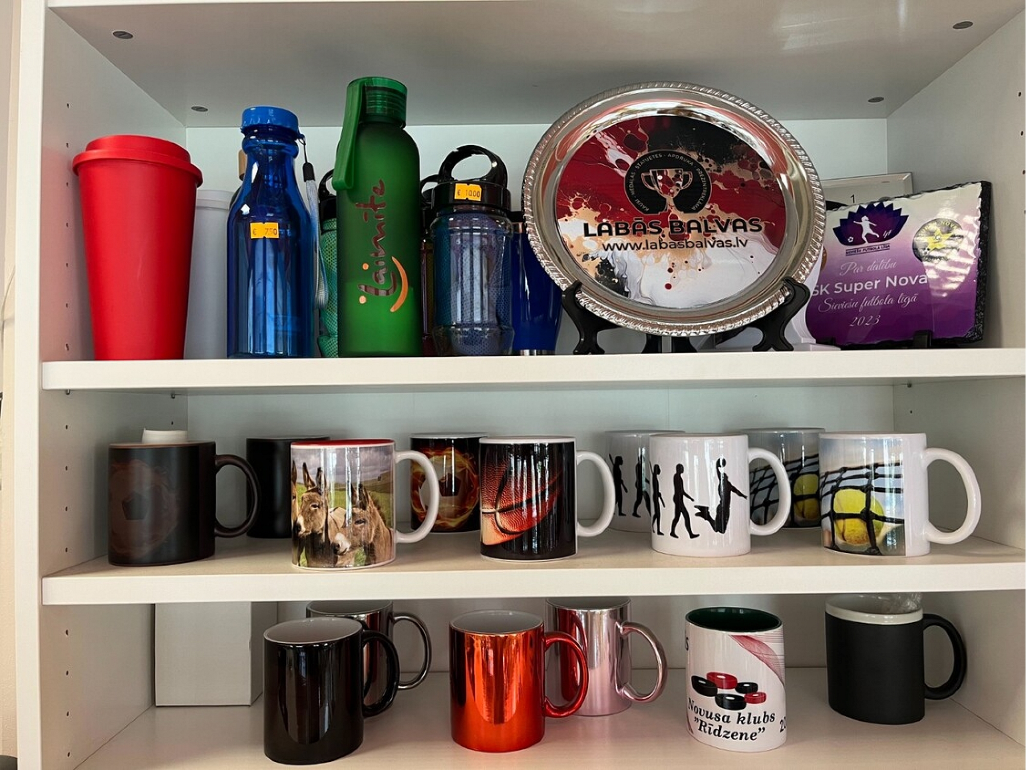 SIA "Labās balvas" is a limited liability company, which was founded in 2012. year. We are engaged in the production and sale of sports ceremonies, as well as any other competitions and events or holiday awards. We have cups, medals, figurines, plates, glass awards, ribbons for medals and prizes. We develop individual models for stickers, cup and medal printing and prepare everything for awarding. Our assortment also includes other items needed for various events - badges, T-shirts, pens, bracelets. We prepare diplomas. We perform UV printing, sublimation and engraving to help the recipient keep memories of the great moments of his life.